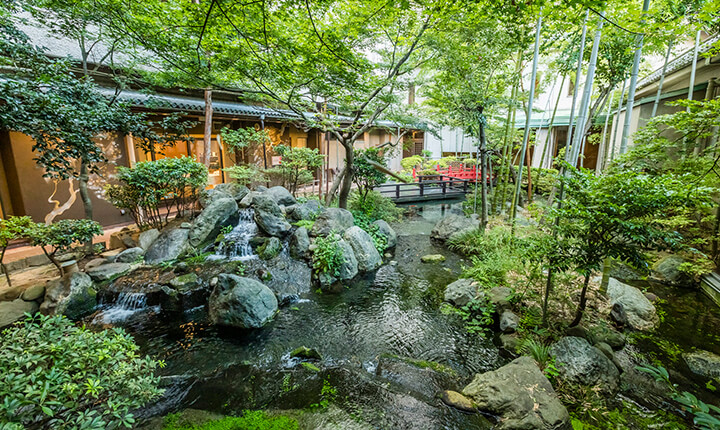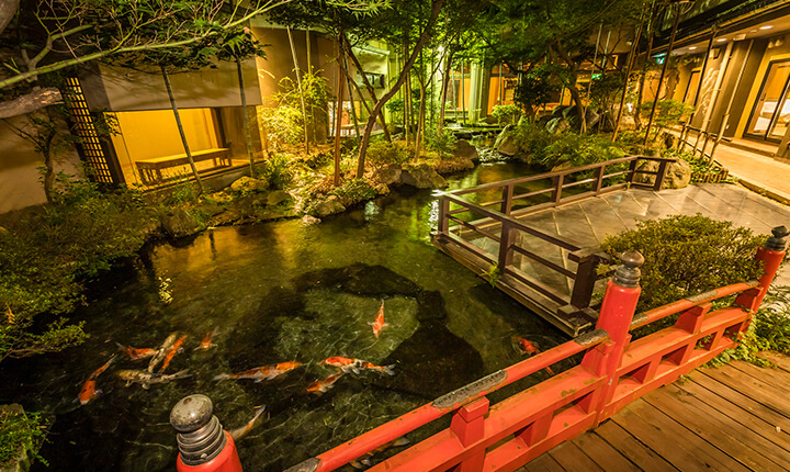 ホテル古柏園には日本庭園のような綺麗な中庭がとっても魅力的です。 水の音や緑の木々に癒されます。