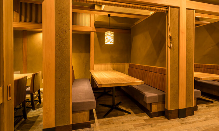 半個室のお席はご家族、ご友人など複数名でもご安心してご利用いただけます。1テーブル4名様までのご利用です。