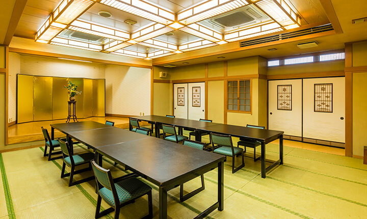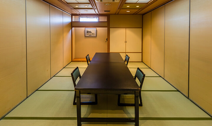 人数や用途に合わせて最適な会場をご案内いたします。和室テーブル席ですので幅広い年代に好まれ、ゆったりと落ちついた空間で会食をお楽しみいただけます。