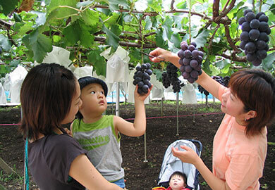 7月中旬から11月中旬までは「ぶどう狩り」、6月下旬から8月上旬まで「もも狩り」が楽しめ、春には多くの花見客が訪れます。